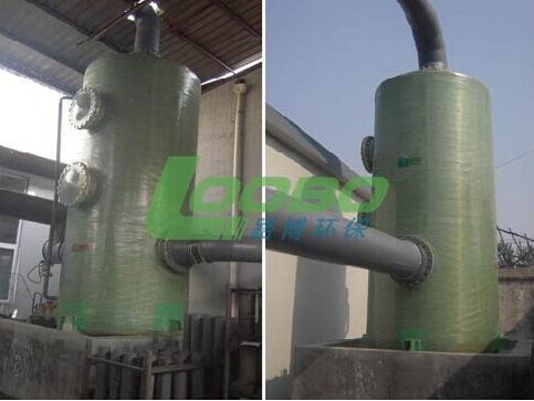 酸(堿)廢氣由風(fēng)管引出后,進(jìn)入廢氣凈化塔(逆流式洗滌塔)進(jìn)行凈化處理,凈化塔內(nèi)裝填有一定的填料,這樣可以使廢氣和吸收液充分接觸,從塔上流下來的水再通過水泵提升到塔頂,不斷循環(huán)利用,循環(huán)液在達(dá)到一定濃度后再排向污水處理系統(tǒng)統(tǒng)一排放。